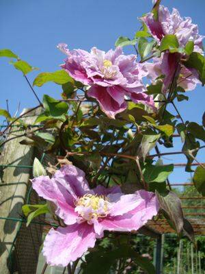 Hij klimt uit zichzelf , maar wie de plant niet netjes opbindt , krijgt een soort kluwen, waar de bloemen met kromme stelen aan groeien