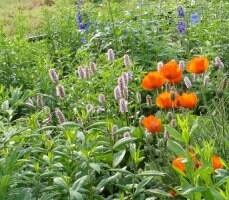 Toorts - Ridderspoor - Tijgerklokje - Gele Lis - Penningkruid - Zeeuwsknoopje - Kattekruid - Diascia- Salie - Smeerwortel - Teunisbloem- Muurbloem- Ganzerik - Papaver- Stten tijm - Clematis- Tuinanjer - Vlambloem - Kranssalie- Ooievaarsbek - Vingerhoedskruid - Vrouwenmantel - Perzikbladklokje - Schijnpapaver - Baptistia