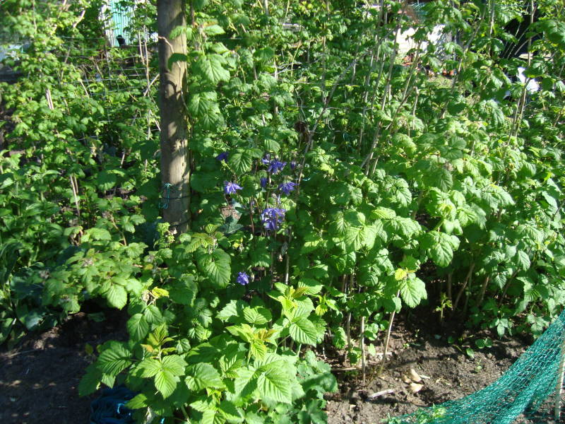 De grondscheuten van de herfst frambozen uitdunnen tot 12 mooie nieuwe scheuten per meter.